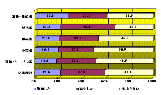 質問4 従業員数は現在と3年前を比べてどうですか。