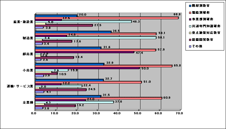 質問20 この1年間、従業員を対象に行った能力開発の内容はどれですか。