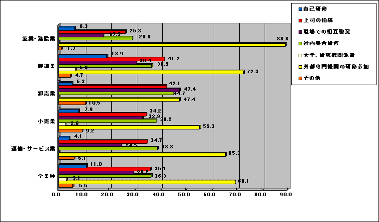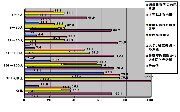 質問21 この1年間、従業員を対象に行った能力開発のための方法はどれですか。
